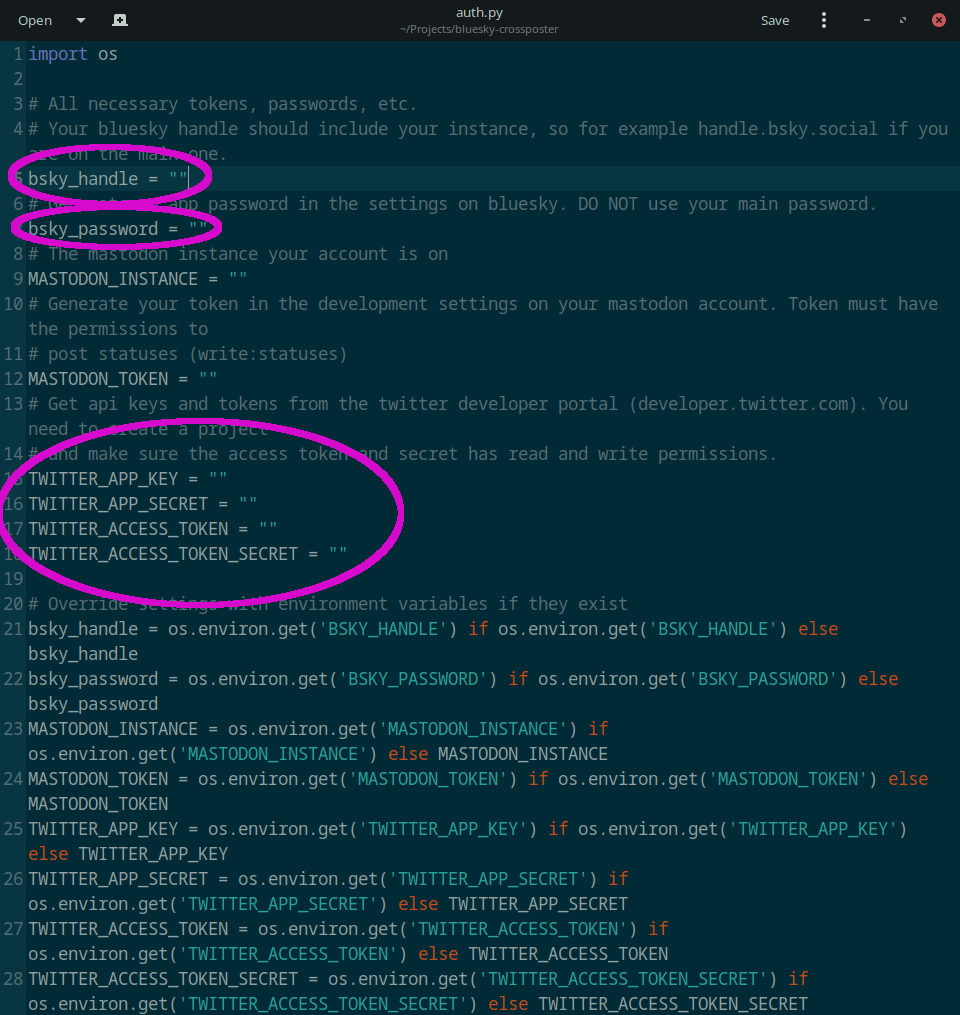 Il va nous falloir une dizaine de clés et autres identifiants exotiques relatifs à Twitter et bluesky (et Mastodon éventuellement mais j'en parle pas dans cette note).