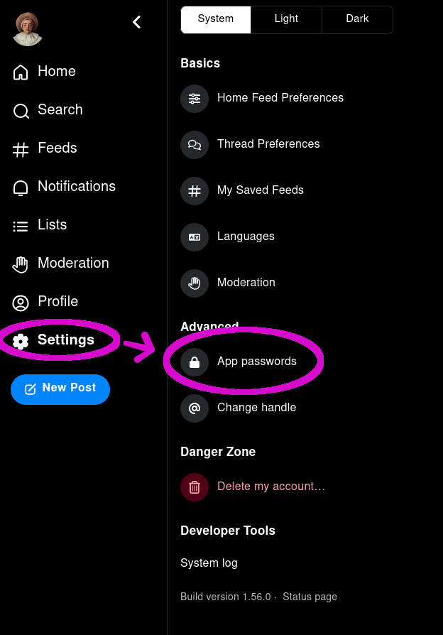 Vous avez bien lu, il n'y a qu'une seule clé à générer sur Bluesky qui se récupère en deux clics.