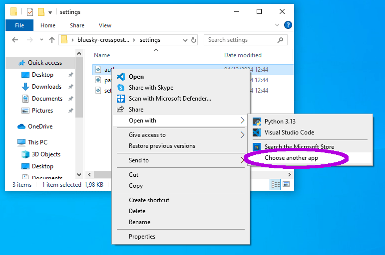 Où vous devrez remplacer D:\scripts\Python\bluesky-crossposter par le chemin complet du projet sur votre ordinateur.