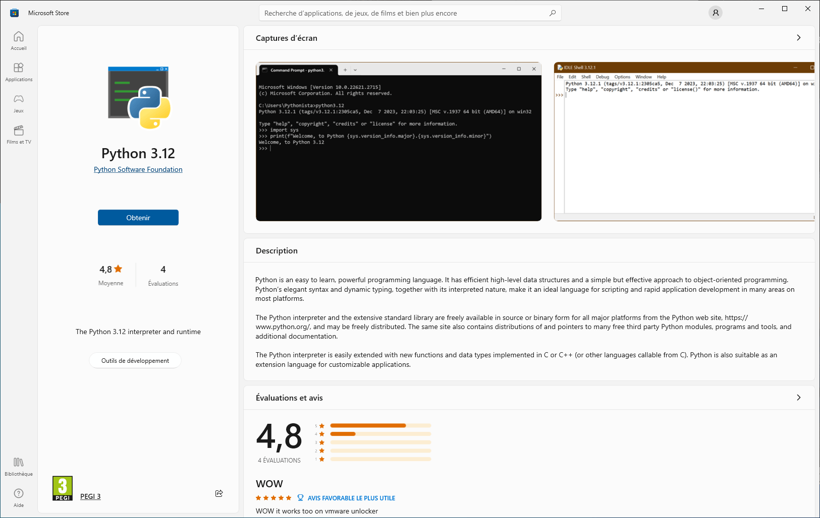 Notez qu'il n'est pas nécessaire d'installer localement Python, il sera présent dans le container.