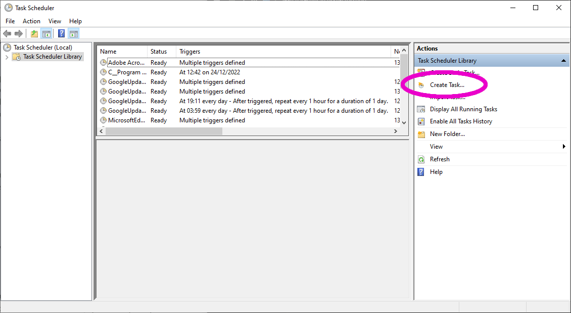 Une fois la tâche créée vous pouvez aussi la lancer sur demande avec un clic droit puis "Démarrer la tâche".