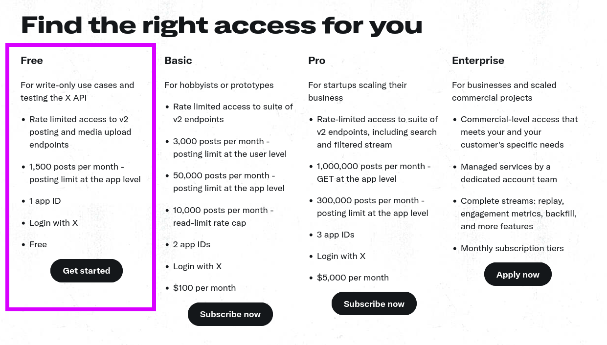 Quelque part sur la page d'accueil devraient se trouver les plans tarifaires pour l'API Twitter.