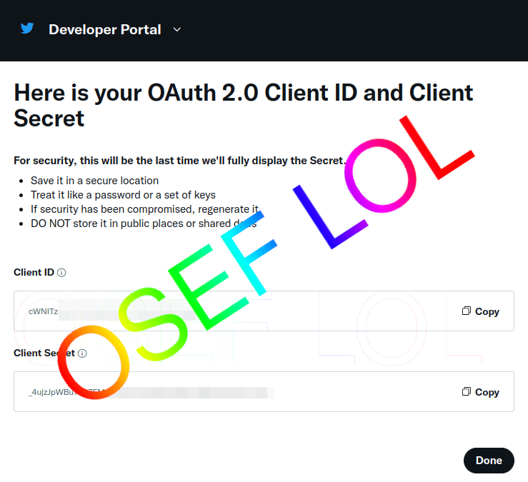 Notez que tous vos secrets Twitter se retrouvent en mémoire et accessibles dans la session de terminal en cours — Ne gardez pas cette session ouverte pour toujours.