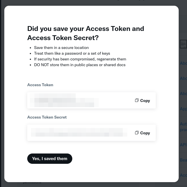 - Les Access Token et Access Token Secret générés un peu plus haut.
