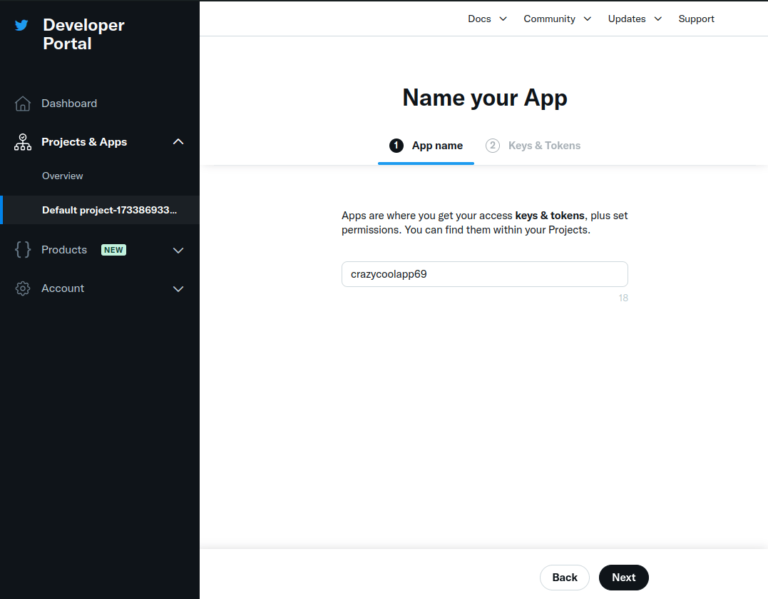Le prochain écran demande de nommer l'app. Ce nom n'a aucune importance.