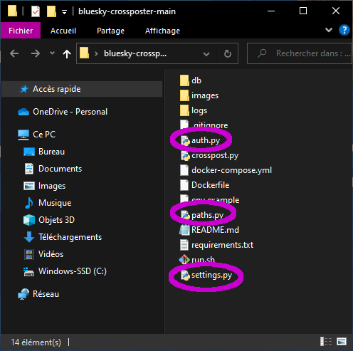 Note pour ceux qui ont suivi le tuto pour Windows: il ne faut pas toucher au fichier paths.py avec la méthode Docker. Si vous l'avez modifié, replacez le fichier original du projet. En fait il faut laisser tous les fichiers tels quels, on fait tout avec le .env.