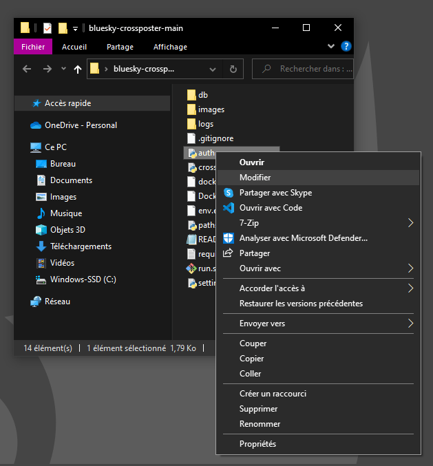 Où vous devrez remplacer D:\scripts\Python\bluesky-crossposter par le chemin complet du projet sur votre ordinateur.