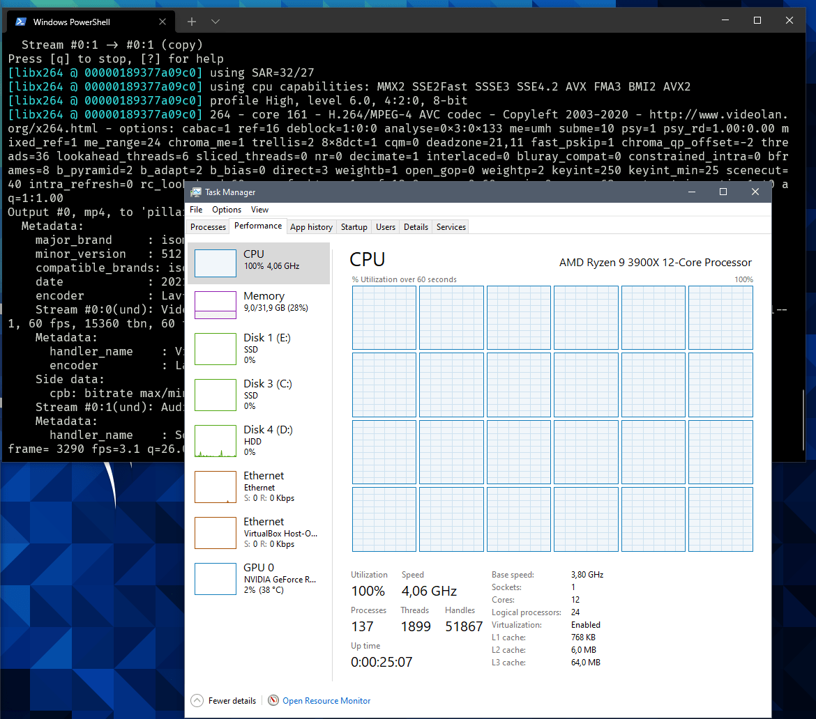 A savoir que ça va bien ruiner votre CPU, armez-vous de patience ou utilisez un preset moins balaise. J'arrive à un pur 100% sur mon 12 coeurs et ça prend quand même plus de 10 minutes pour une vidéo pas très longue.