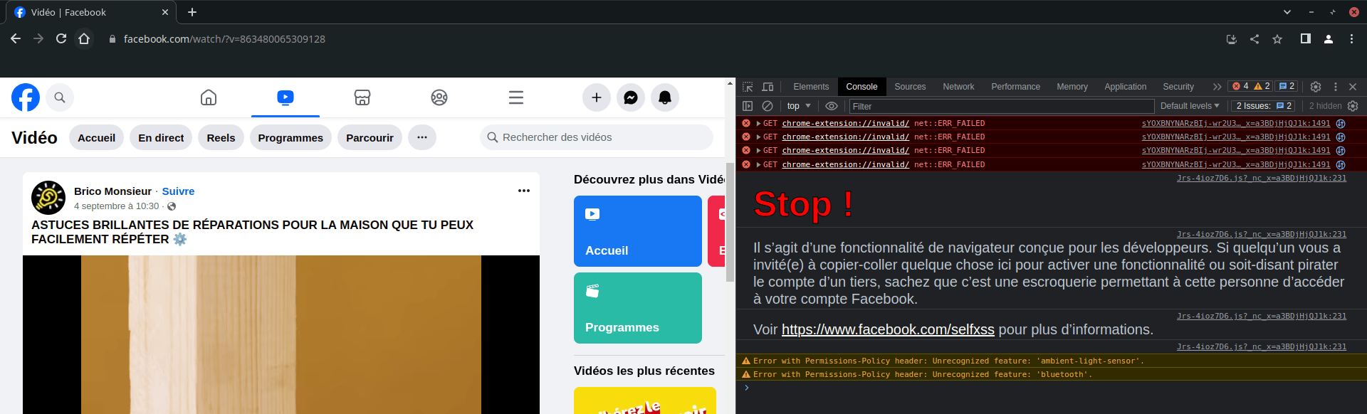 Si tout ça vous fait déjà peur, c'est pas grave, on va pas rester sur l'onglet avec le gros avertissement (c'est la console JavaScript pour les connaisseurs) et plutôt cliquer sur l'onglet "Réseau":