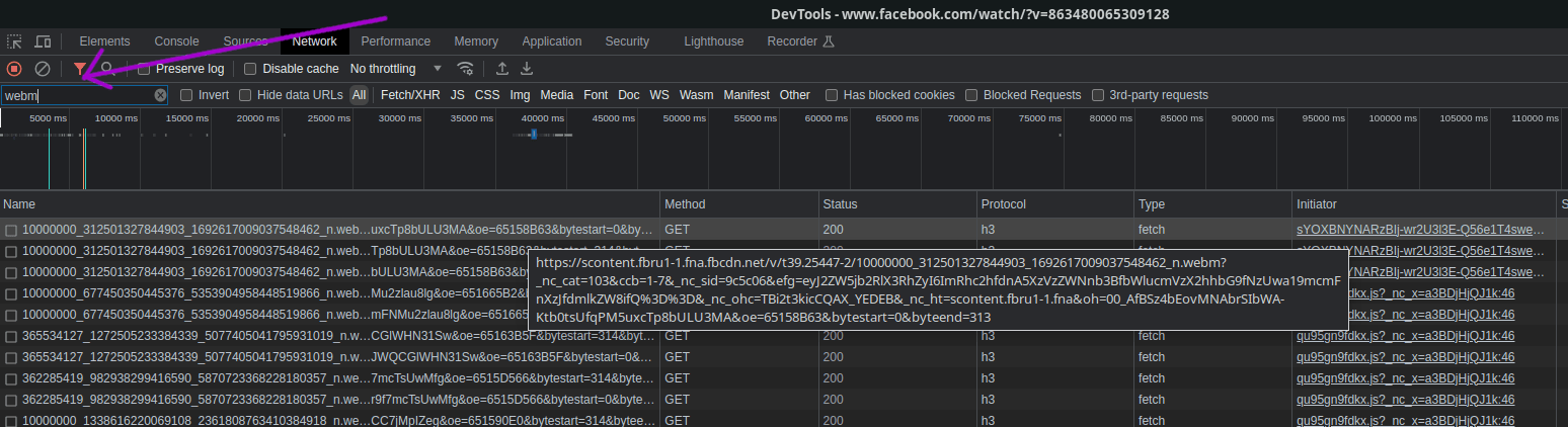 Par exemple, je suis pas loin de Bruxelles, mes URL de CDN vont apparemment vers le très limpide et mélodieux nom de domaine scontent.fbru1-fna.fbcdn.net — Je pourrais par conséquent chercher "fbru" par ex. (le plus "safe" demeurrant chercher "webm" ou "mp3').