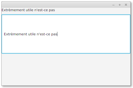 JavaFX met fin à ce problème particulier en proposant par défaut un thème tout gris qui respire la dépression suivant la vente d'une technologie informatique populaire à une multinationale disposant d'argent infini. Blague à part, c'est simple et efficace, les normes d'accessiblités sont bien respectées (en particulier le contrôle qui a le focus est bien évident parce qu'il brille en bleu) et ça a un look assez moderne sans tremper dans le material design, qui est une autre histoire.