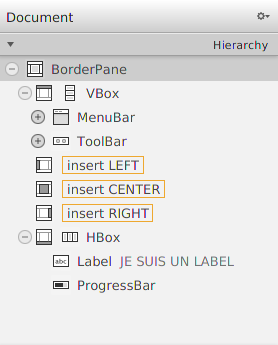 Il s'agit d'utiliser le champ de recherche en haut à gauche pour trouver vos composants. Commencez par chercher un Border Pane à glisser-déplacer dans la hiérarchie de composants en bas à gauche.