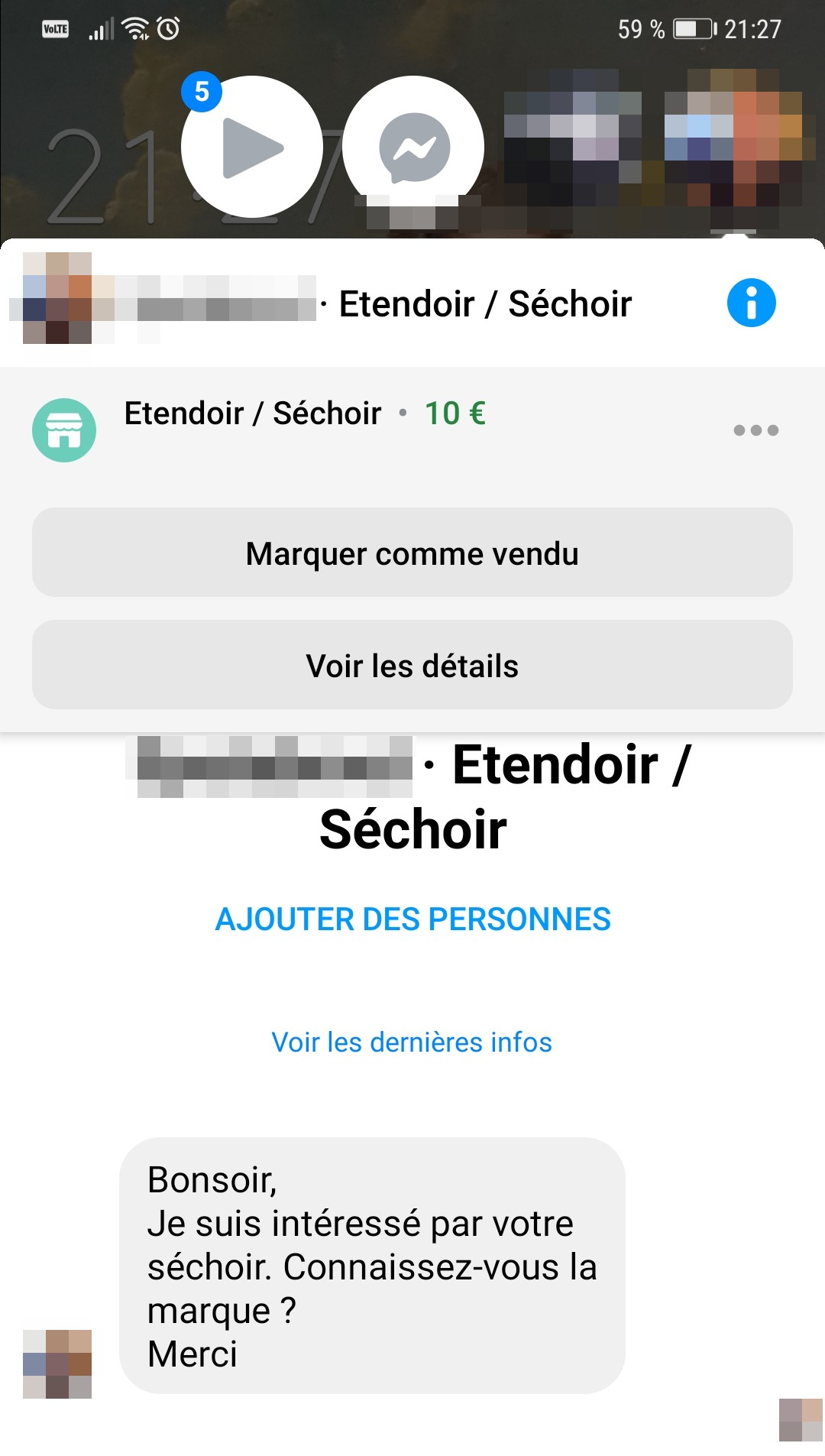 Et puis ben sur Marketplace les gens vous demandent toujours quel est votre dernier prix. C'est genre leur deuxième message après le truc par défaut "EST-CE QUE CET ARTICLE EST TOUJOURS DISPONIBLE".