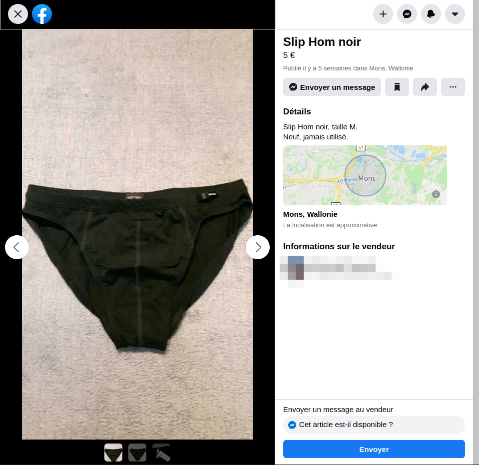 Il a vraiment rien d'autre à vendre? Sa compagne ou son compagnon lui ont dit "Franck, faut vraiment que tu vendes ces deux slips 'neufs', là. On a besoin des €10 pour acheter un tichert, je suis sûr que c'est ça leur dernier prix si on insiste".