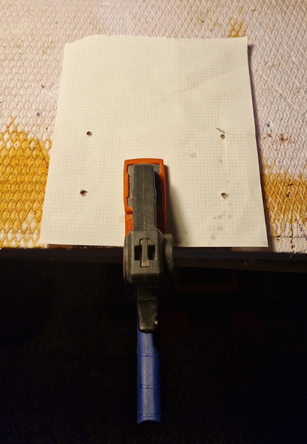 On fait semblant de rien et on continue à ajuster la feuille sur la plaque avec douleur, appréhension et un serre-joint: