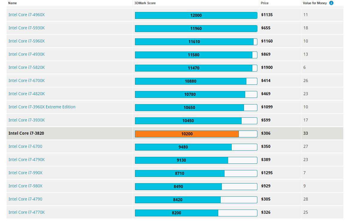 Les scores CPU de je-ne-sais-plus-quel test 3Dmark me claissaient très proche du i7 6700k qui est moulte générations plus récent et en plus est le pionnier de l'architecture (Skylake) qu'Intel utilise toujours aujourd'hui (non c'est pas une blague).