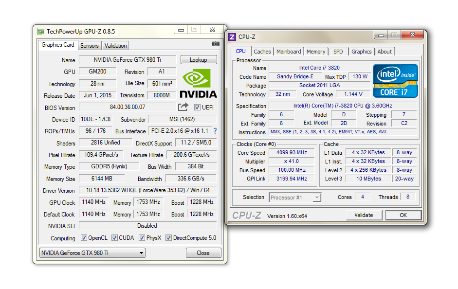 Il est néanmoins vaincu, à mon avis à cause d'un gag dans le fonctionnement du "turbo boost" en cela qu'il est limité dans le temps alors que mon 3820 est non-stop à 4.3 Ghz. J'imagine qu'un 4790k ou 6700k overclockés seraient plus significativement devant. Et j'ignore tout du potentiel d'OC de ces CPUs.