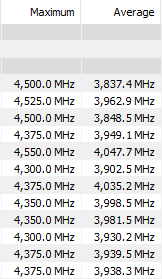 Sur les Ryzen 3 on passe d'un coeur à l'arrêt (oui ils peuvent se suspendre) à 800 Mhz, puis à 4300 Mhz, puis un micro-saut à 4550 Mhz puis retour à 2000 puis... Et sur un seul des 12 coeurs, les autres font leur propre salade de fréquences totalement indépendamment.
