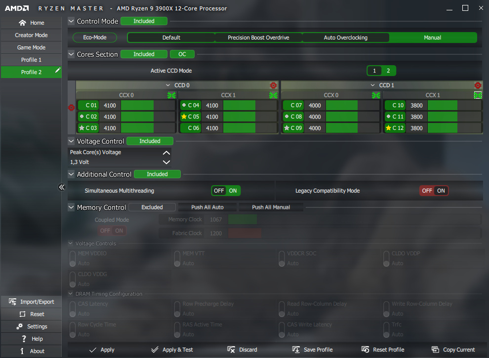 Une fois Ryzen Master lancé, cliquez sur "Profile 2" histoire de stocker notre config quelque part.