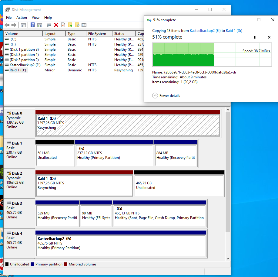 J'utilisais un RAID 1 de deux disques de 1.5TB sur l'ancienne machine, via la création de RAID sur la carte mère avec le contrôleur Intel RapidStorage. Qui est tout sauf rapide.