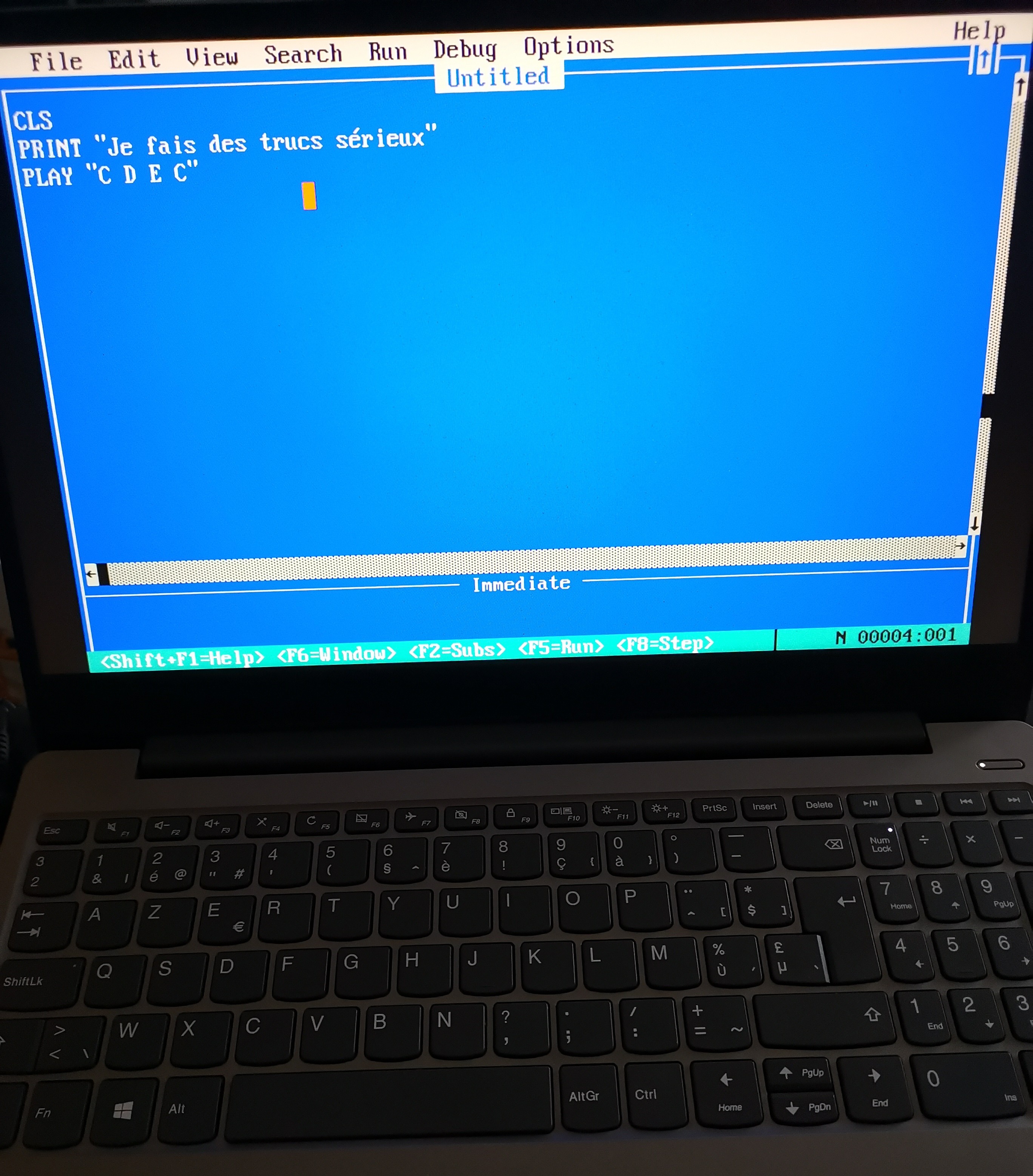 Pour revenir sur l'aspect nostalgie tant que je vous ai toujours sous les yeux, j'ai passé un certain nombre d'heure à jouer avec l'interpréteur BASIC de MSDOS/Windows 3.11: QBASIC.