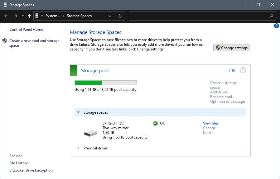 Je me dis que ce serait pas plus mal de tester les storage spaces, surtout que les disques dynamiques ont un gros désavantage: au moindre crash/panne de courant/overclock foireux il tout DOIT vérifier sur le RAID et ça prend des plombes et contrairement à un RAID Intel ou AMD, il n'y a aucune option pour arrêter la vérification.