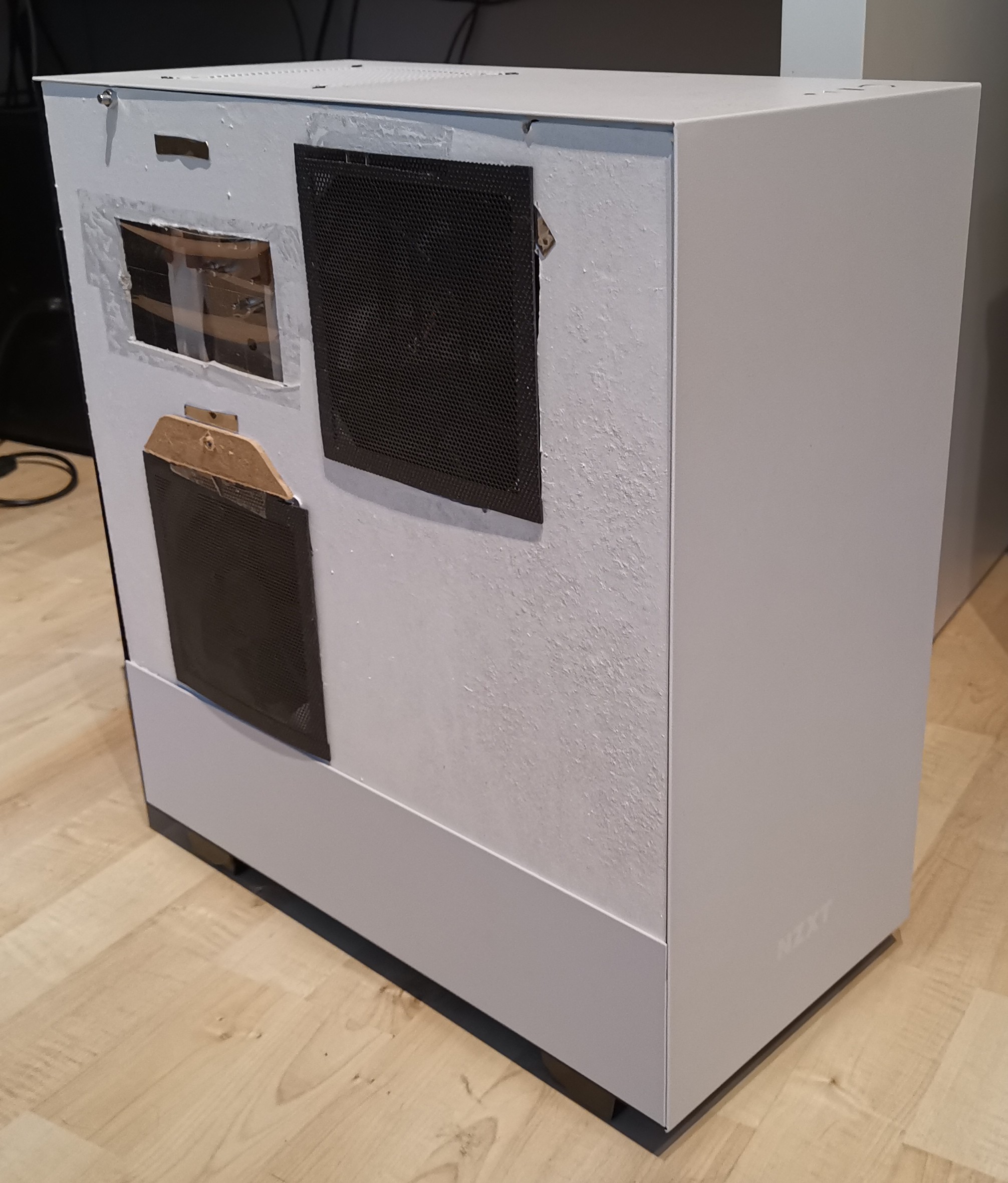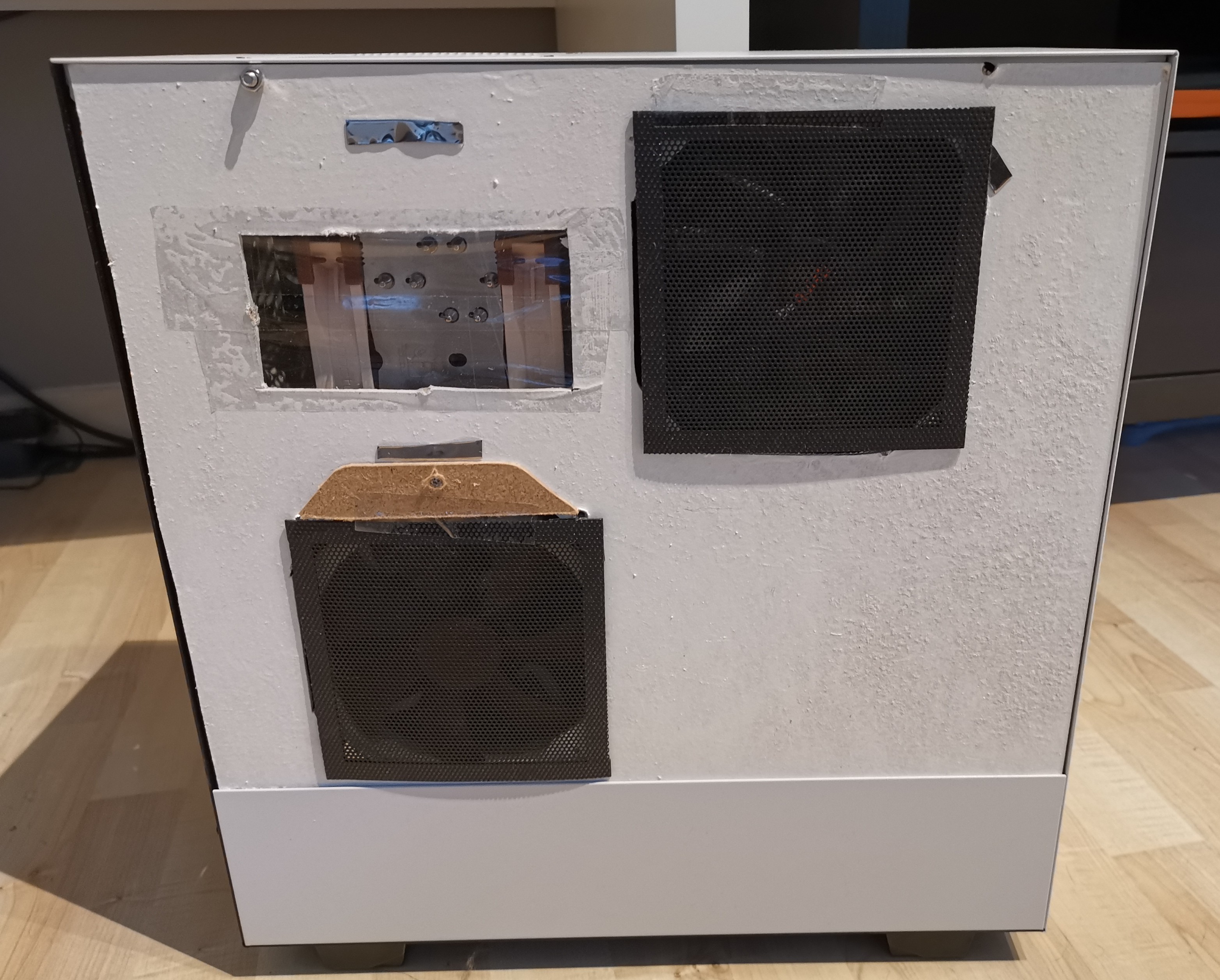 I'm still rocking this H510 side panel mod featuring a tape window that I need to remove to access the single bolt that releases this plywood wonder.