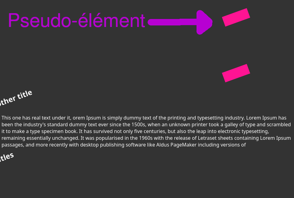 Je vais utiliser JavaScript pour ajouter dynamiquement ces éléments de substitutions, et les placer juste avant chaque titre concerné par l'animation de rotation/translation.